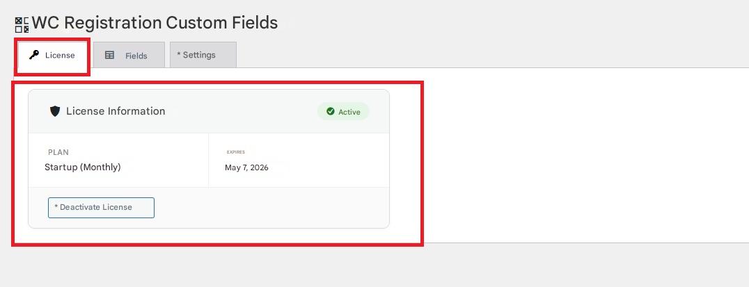 There's not much to explain here; you'll be able to see the plan you've subscribed to, the expiration date, and the option to deactivate the license.
