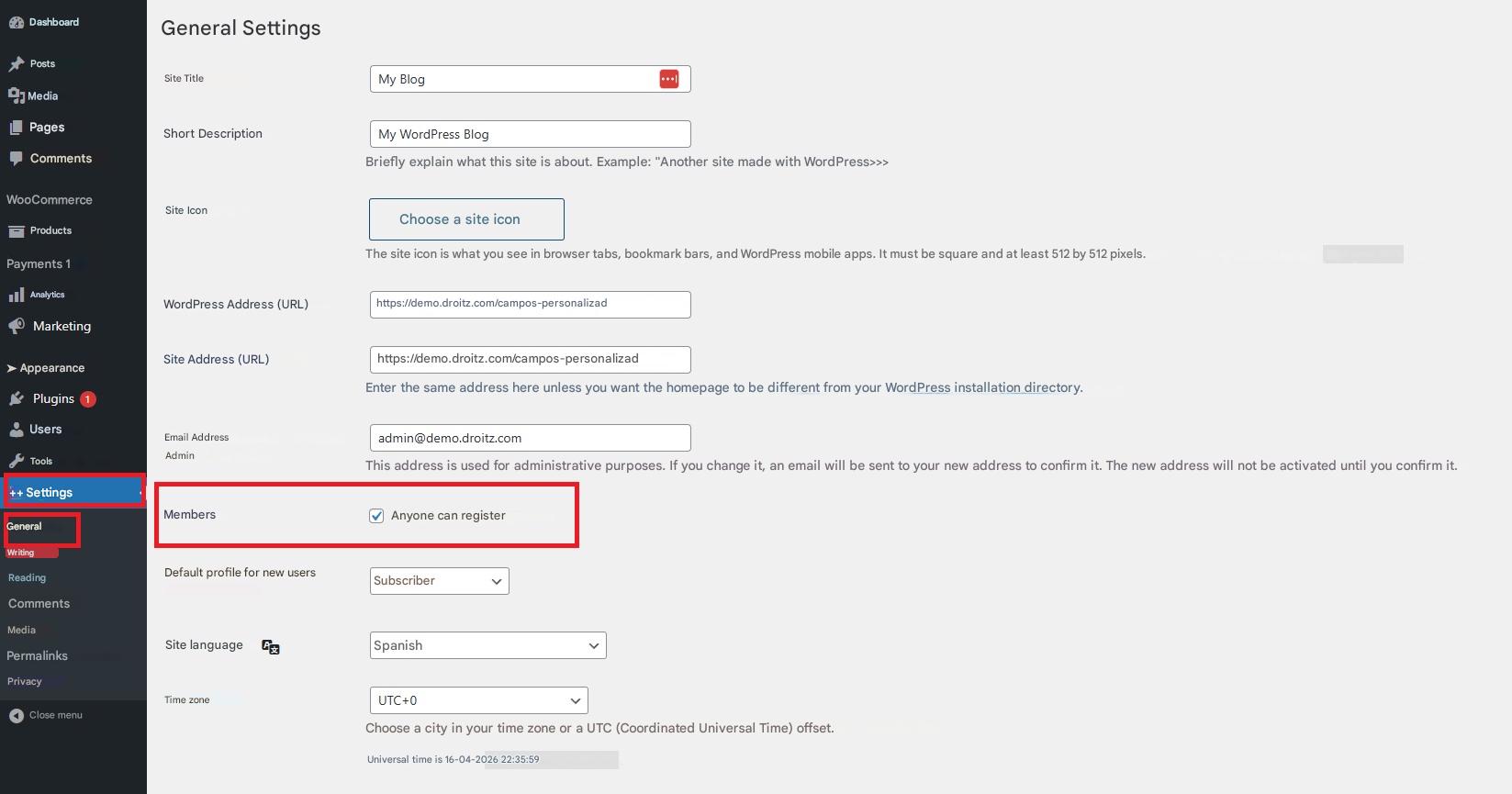 • Enable registration for anyone: Go to Settings > General, and in the Members section, enable the “Anyone can register” option. This will enable user registration on the site.