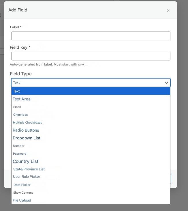 The field key is automatically filled in based on the information you enter in the "Label".