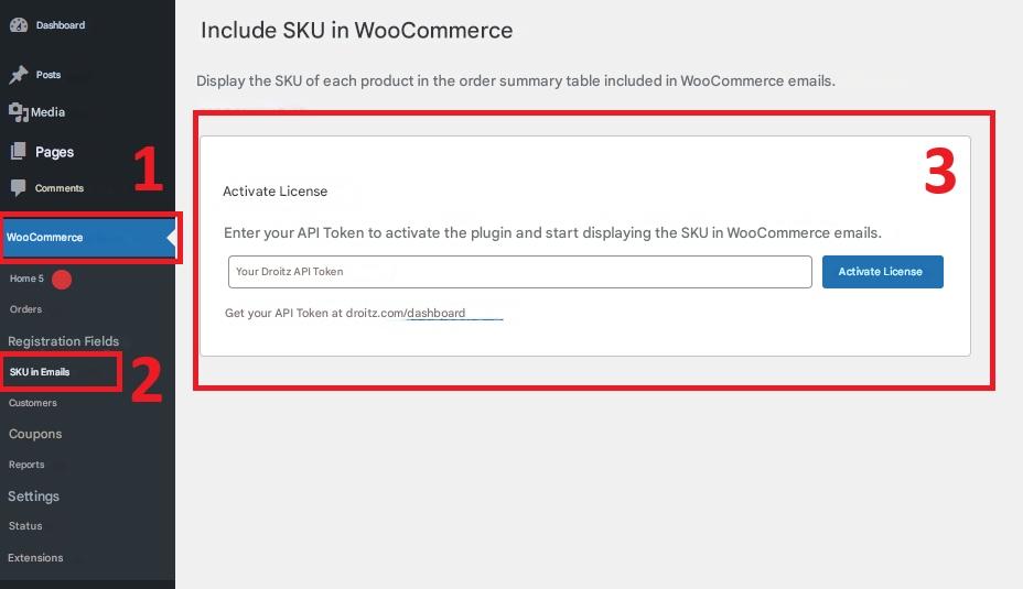1. Go to  WooCommerce → SKU en Emails in your WordPress dashboard.