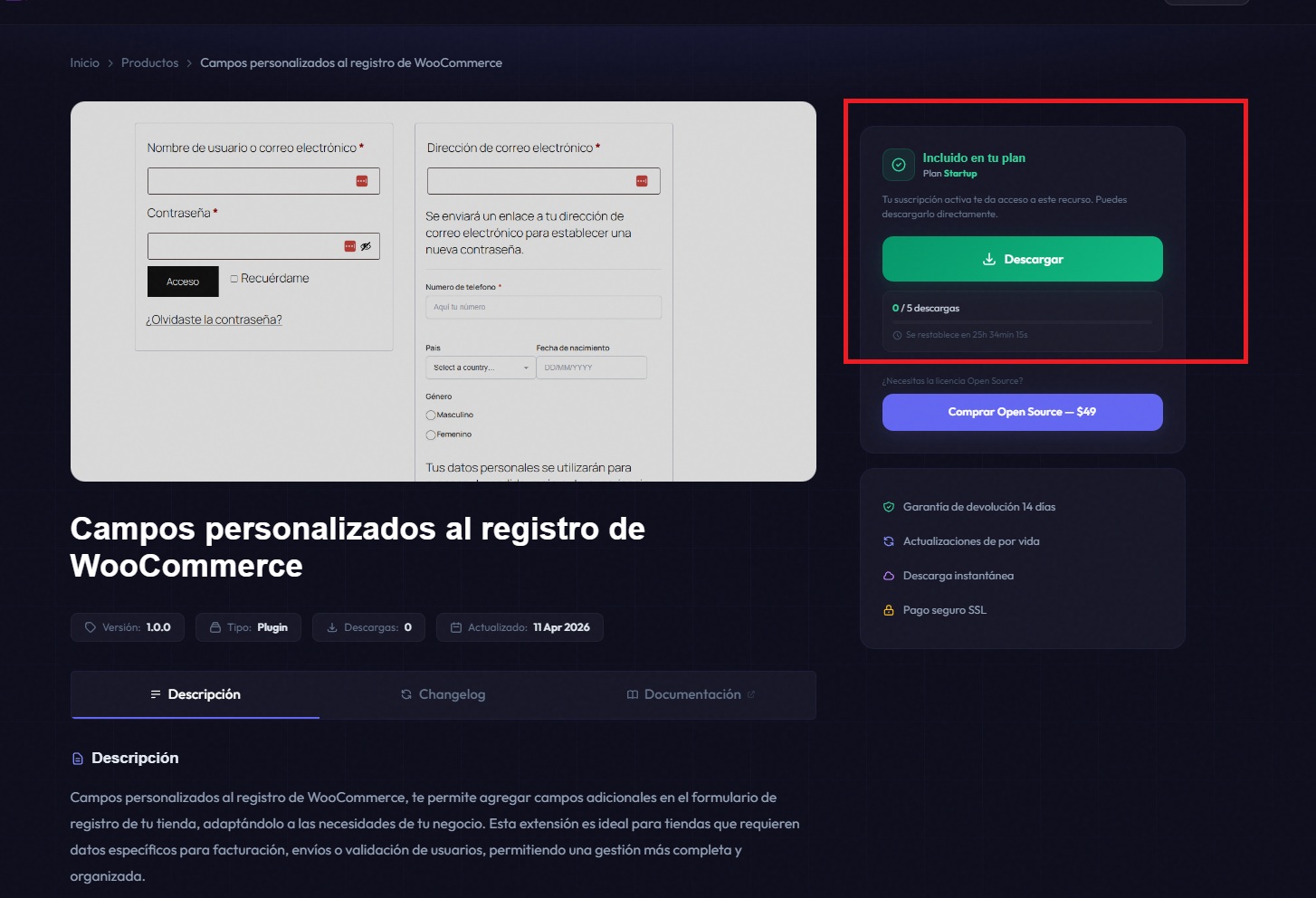 1. Tras adquirir la licencia, descargue el archivo del plugin en formato .zip.