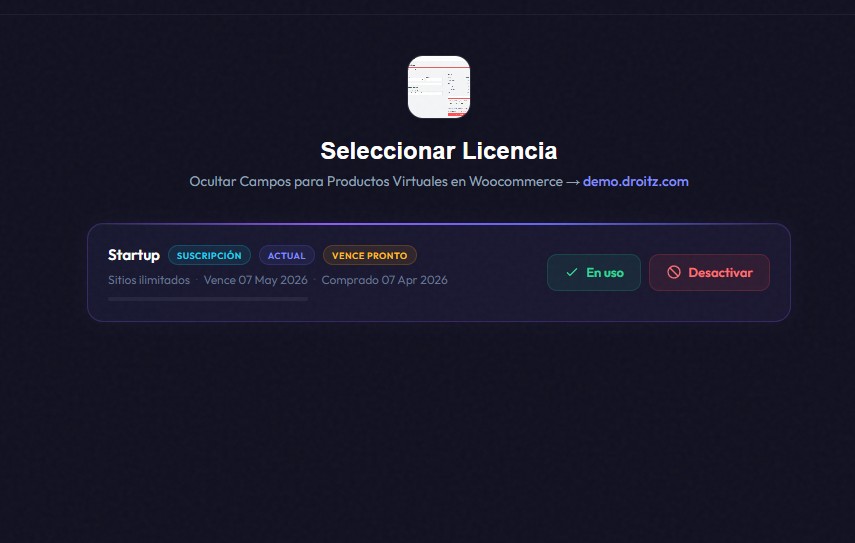 No hay mucho que explicar aquí; podrá ver el plan al que se ha suscrito, la fecha de vencimiento y la opción de desactivar la licencia.