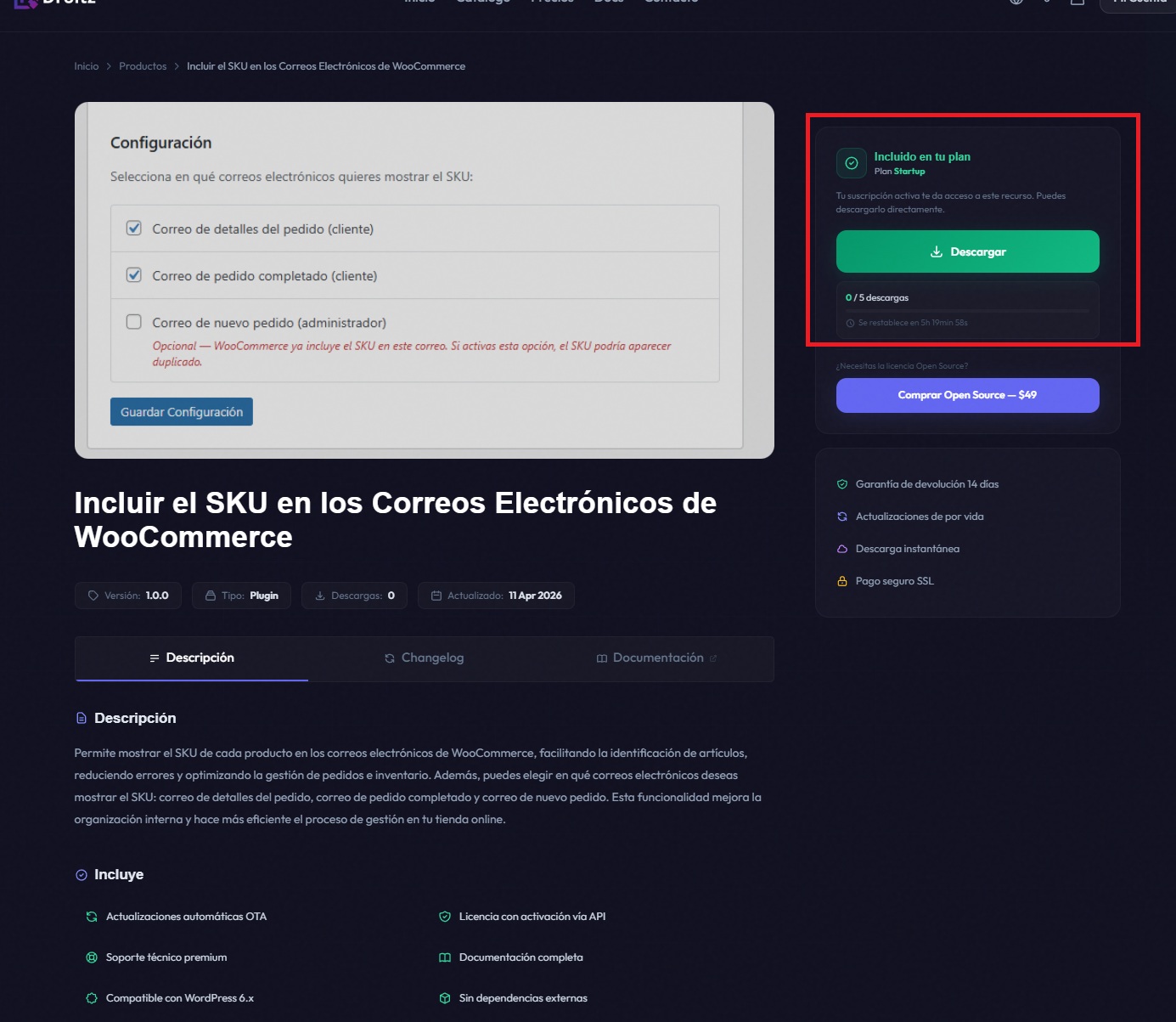 - Descarga el archivo del plugin en formato .zip tras adquirir la licencia.