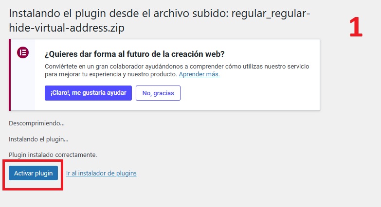 5. Finalizada la instalación, haz clic en Activar plugin.
