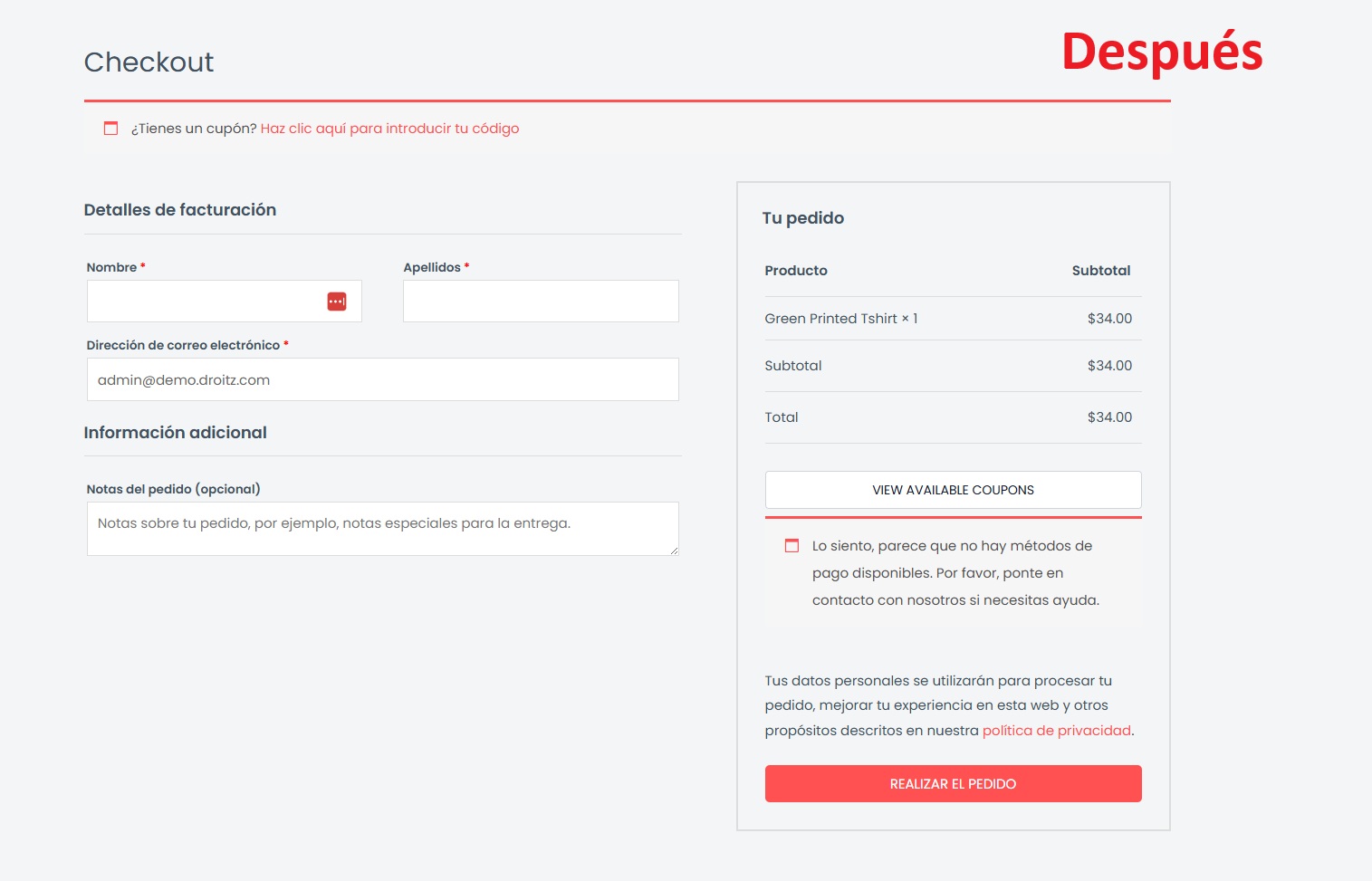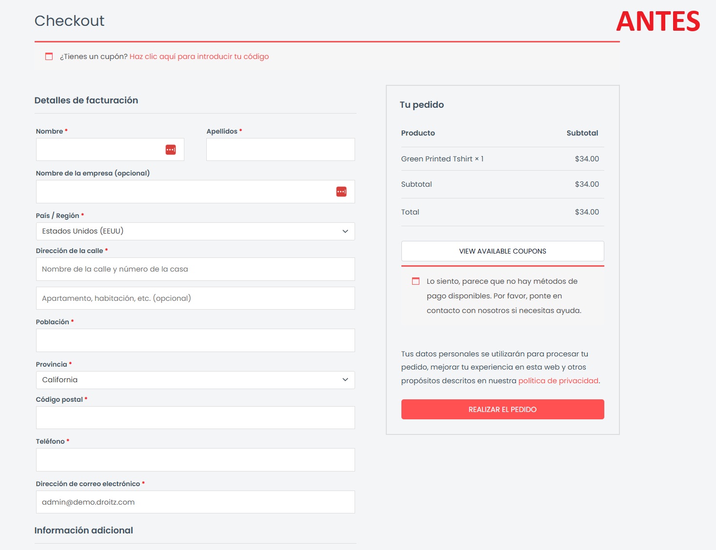 Con este plugin puedes elegir qué campos mostrar u ocultar cuando un cliente compra productos virtuales, como por ejemplo: